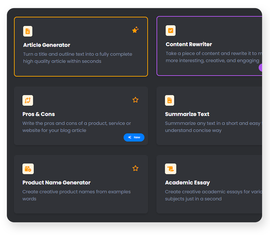 Choose from a wide array of AI tools to write social media ads, hero sections, blog posts, essays, etc...